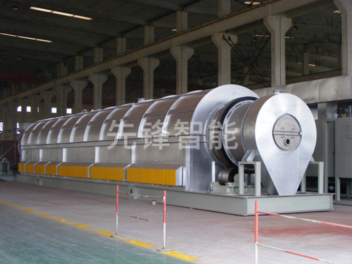 間接加熱連續操作型焙燒爐工作時,物料經爐頭喂料器進入爐筒,加熱爐膛內裝有電熱元件或燃料燃燒器,通過自動控制系統調節電熱元件的電流或燃燒器的火焰來控制爐膛溫度,從而使物料在一定溫度下進行焙燒。爐筒操作時水平或傾斜。物料在爐筒內一邊焙燒,一邊在爐筒轉動下向前移動,焙燒后的物料從出料端進入下一道工序。物料的焙燒時間可通過調節爐筒轉速或爐筒與水平的夾角來控制。